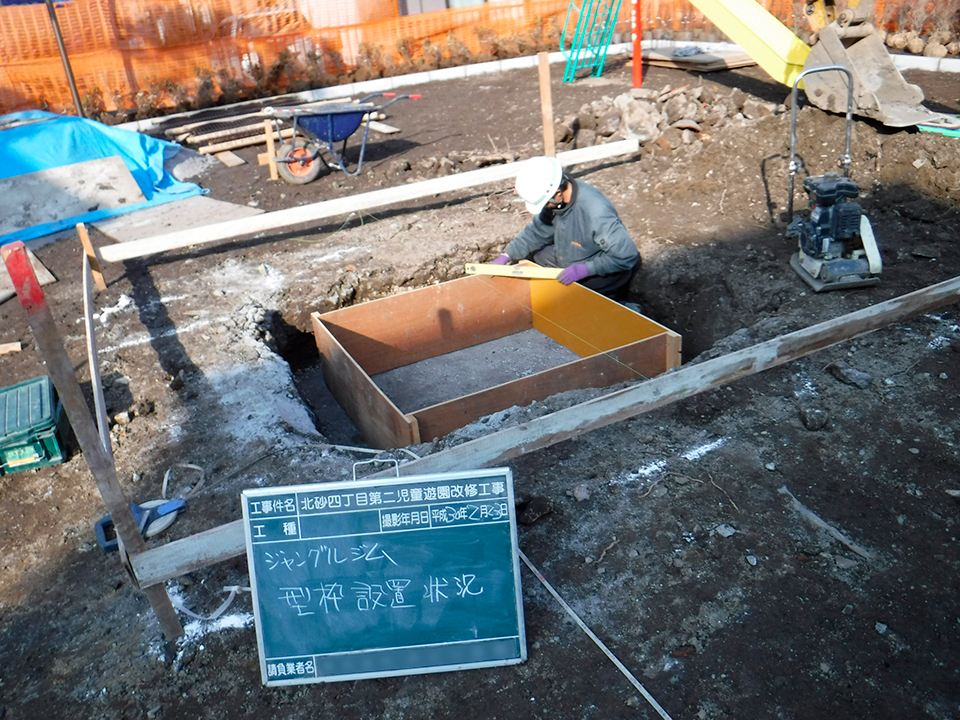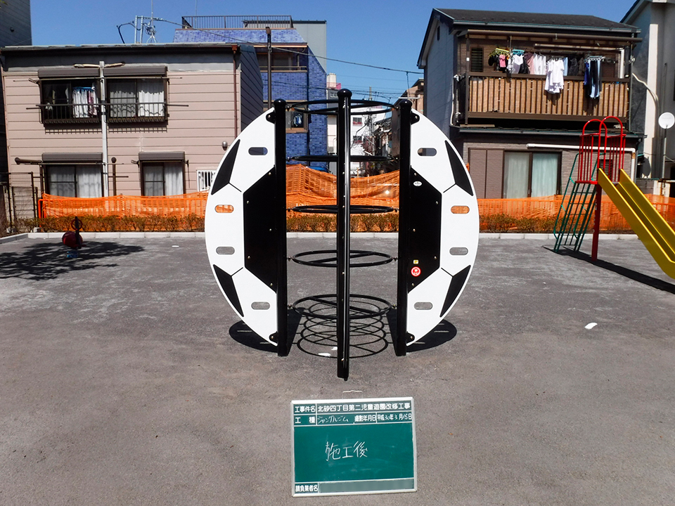小さな公園に可愛らしいジャングルジムを設置いたしました。