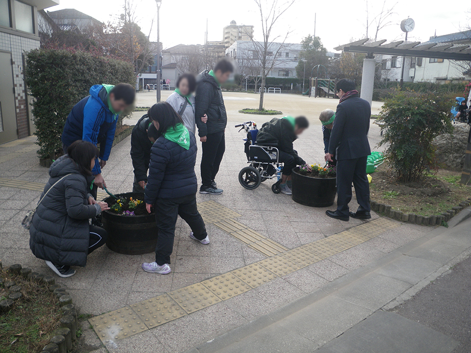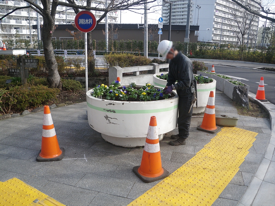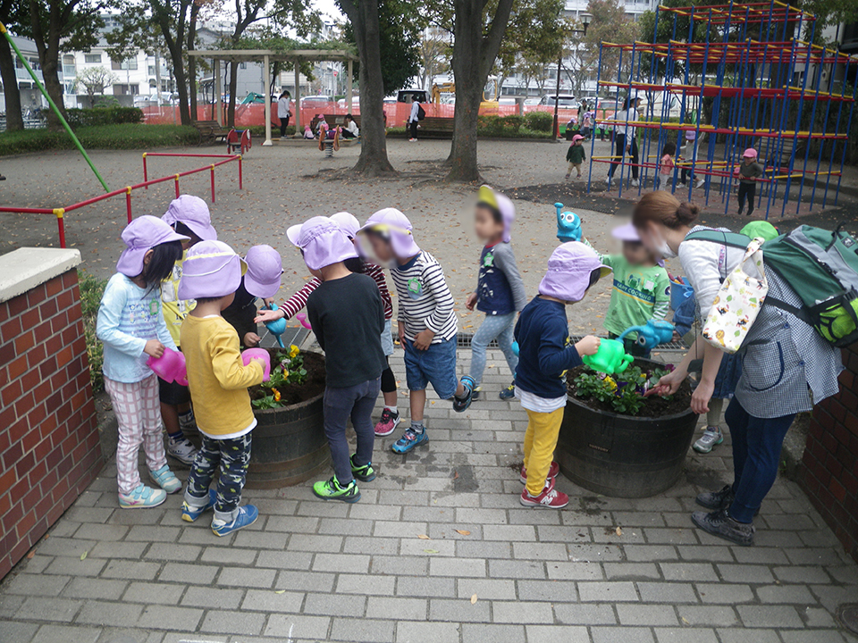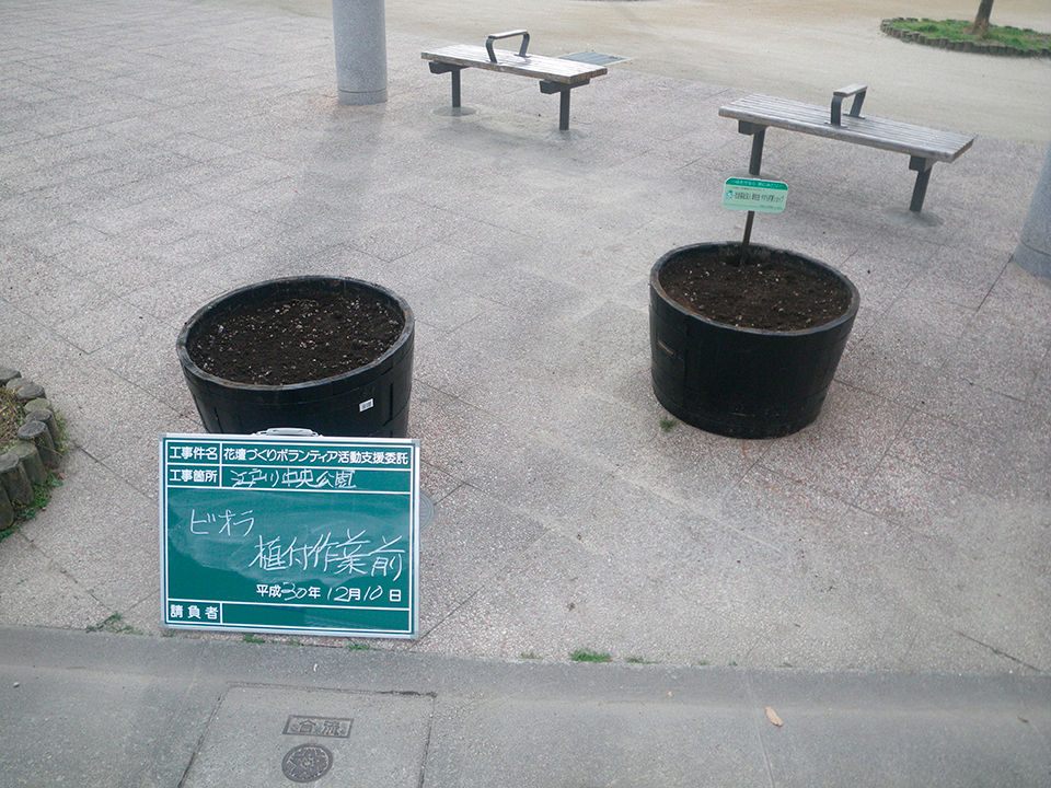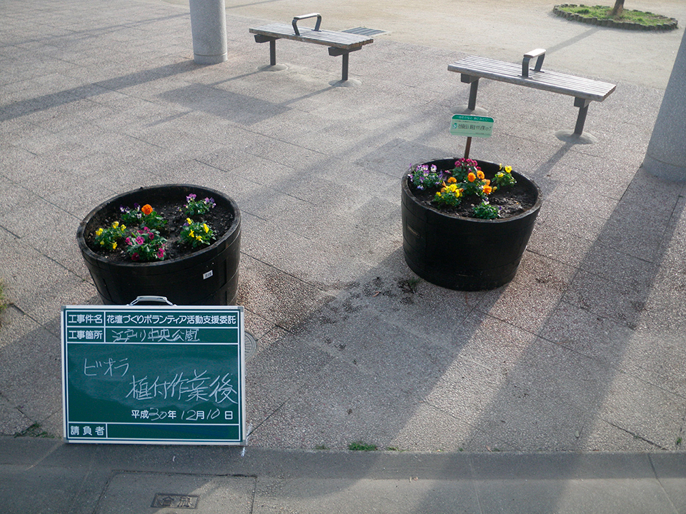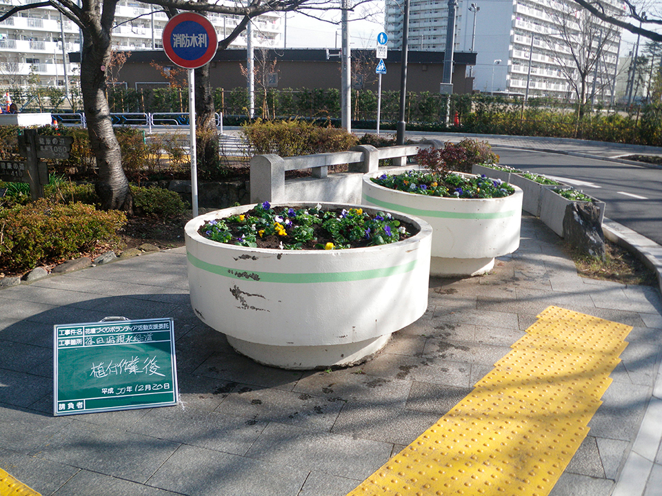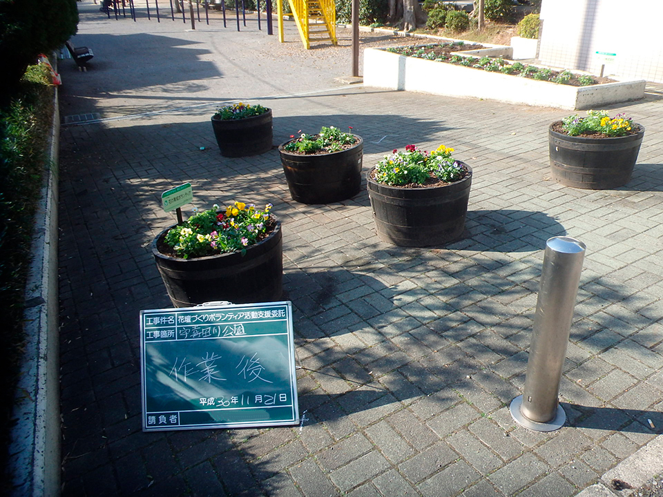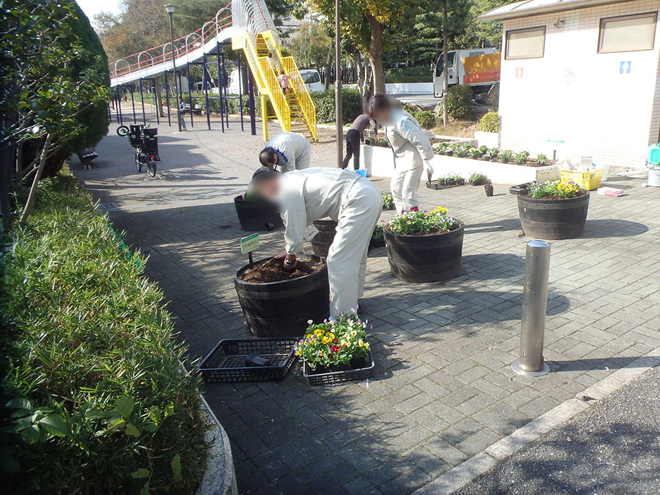 毎年春と秋の2回保育園・会社等の皆様と公園の花の植え付けのボランテァ活動を行っています。